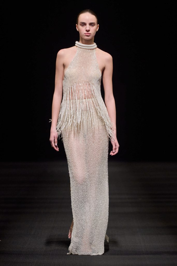 شاركت علامة “NARMA” السعودية للمرة الأولى في أسبوع دبي للموضة من خلال مجموعتها الجديدة بعنوان “العقال”، والتي تعيد تقديم رمز ثقافي بارز برؤية معاصرة لأزياء نسائية فريدة من نوعها. وقد جاءت التصاميم مفعمة بالألوان الوردية والبيضاء الناعمة ومرصّعة باللؤلؤ والترتر والكريستال. وقدّمت هذه المجموعة الأنوثة بأسلوب تعبيري مبتكر، تأكيداً على قدرة الإرث الثقافي المتوارث على الاستمرار والتكيّف بطرق وأساليب متنوّعة. ونجحت علامة “NARMA” من خلال هذه المجموعة في ترجمة الرموز الثقافية إلى عناصر حيّة تتبدّل وتتطوّر في عالم الموضة المعاصرة.