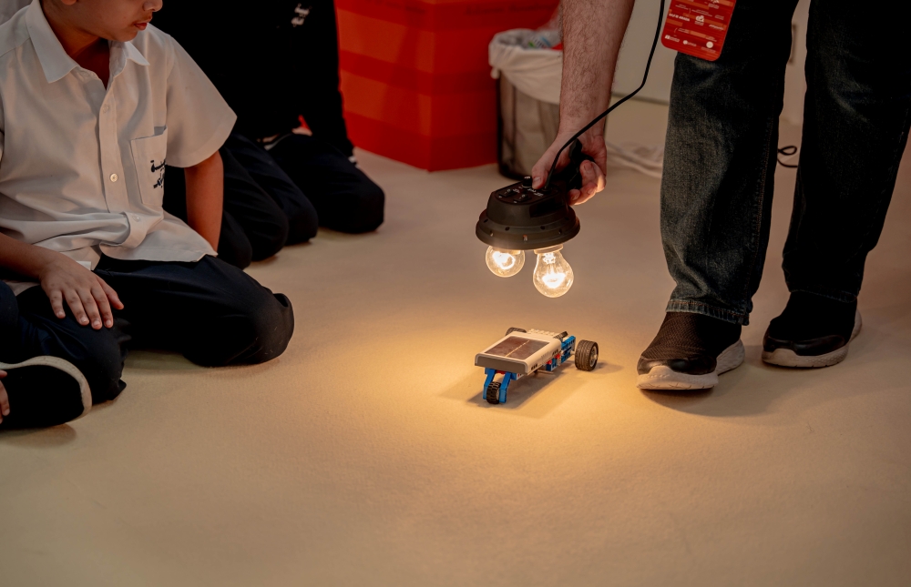 وشهدت الورشة تفاعلاً كبيرًا من طلبة المدارس الذين تراوحت أعمارهم بين 8 و12 عامًا، حيث انشغلوا بتجريب سيناريوهات مختلفة لمجسّمات سياراتهم الشمسية، في أجواء من التعاون والتعلّم.