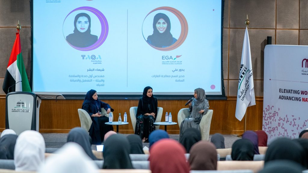 نظمت مؤسسة نماء للارتقاء بالمرأة، اليوم (الثلاثاء)، في جامعة الشارقة، جلسة بعنوان “نساء في التخصصات التقنية والهندسة (STEM): كوني جزءًا من التغيير”، والتي استهدفت الطالبات في السنة الأخيرة والخريجات الجدد من تخصصات العلوم والتكنولوجيا والهندسة والرياضيات (STEM)، لمناقشة واقع المرأة في هذه المجالات الحيوية، وأهمية تعزيز حضورها وتميزها فيها، من خلال عرض تجارب شخصية ملهمة، وفتح نقاشات حول مستقبلها في القطاعات الصناعية والتقنية.