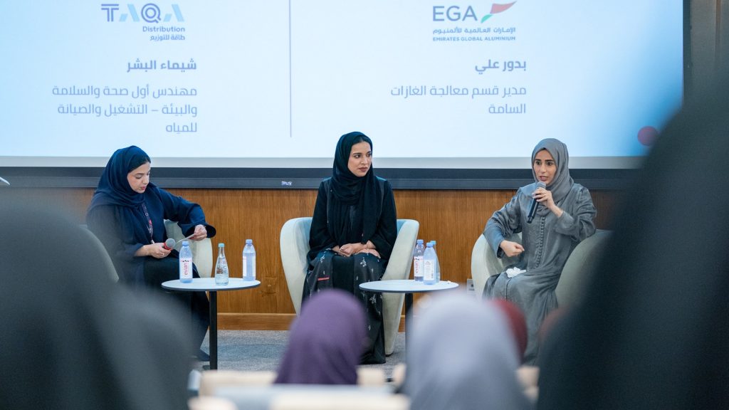 وتأتي الجلسة بالشراكة مع شركة “الإمارات العالمية للألمنيوم”، وشركة “طاقة للتوزيع” وتحدث فيها كل من بدور علي، مدير قسم معالجة الغازات السامة في شركة “الإمارات العالمية للألمنيوم”، وشيماء البشر، مهندس أول الصحة والسلامة والبيئة – التشغيل والصيانة للمياه في شركة “طاقة للتوزيع”، وذلك ضمن سلسلة “حوارات نماء”، التي تهدف إلى تعزيز وعي النساء بمواضيع تمس حياتهن اليومية وتمكينهن من اتخاذ قرارات مدروسة تدعم مشاركتهن الفاعلة في مختلف القطاعات الاقتصادية والاجتماعية والثقافية.
