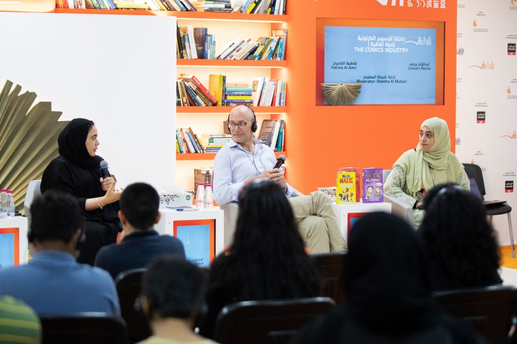 جاء ذلك في ندوة ثقافية خلال فعاليات “معرض الشارقة الدولي للكتاب” في دورته الـ41، استضافت الكاتب والفنان الأمريكي لينكولن بيرس، رسام الكاريكاتير ومؤلف سلسلة كتب القصص المصورة “بيغ نيت”، والكاتبة والفنانة الإماراتية فاطمة العامري.