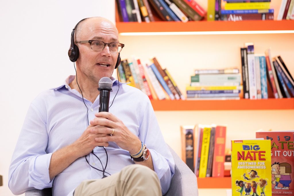 وأضاف: “تعلمت عبارة (القارئ المتردد) عندما بدأت كتابة روايات اليافعين، واكتشفت أن الأولاد أكثر تردداً في القراءة من البنات وهن في الحقيقية قارئات أفضل من الأولاد، ويتمثل هدفي الأساسي من تأليف كتب الأطفال هو أن أجعلها ممتعة، لأنني مفكر بصري، وأردت إضافة الرسومات إلى القصص، لأن قراءة الكتب المصورة تمهد الطريق أمام القارئ المتردد وتحفزه على قراءة قصص أطول وكتب أكبر”.