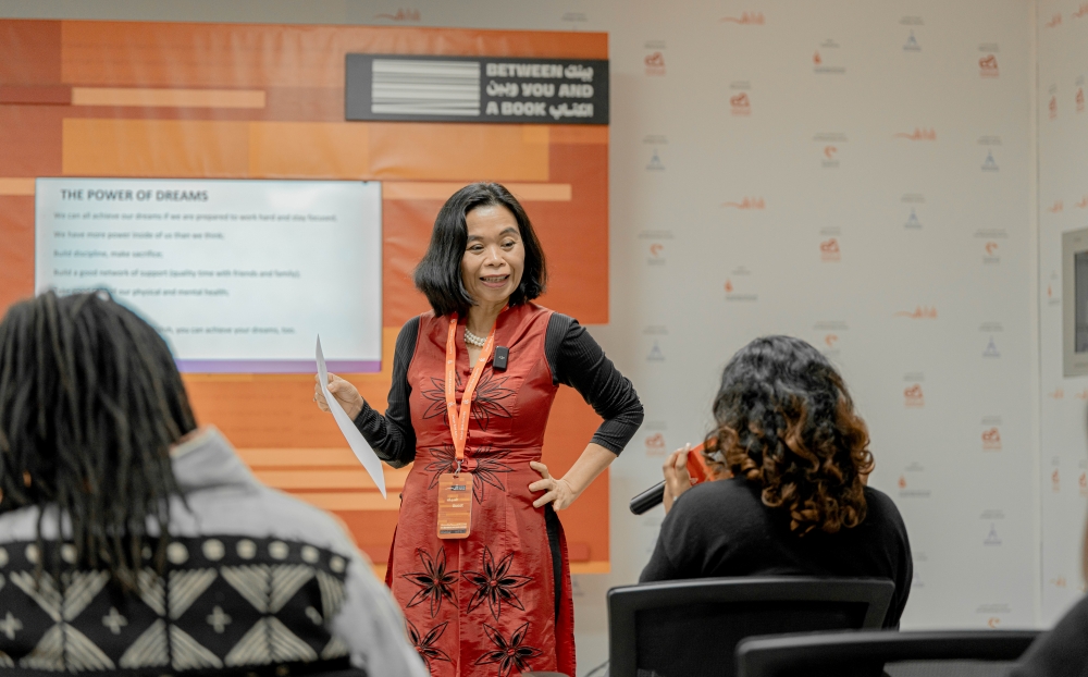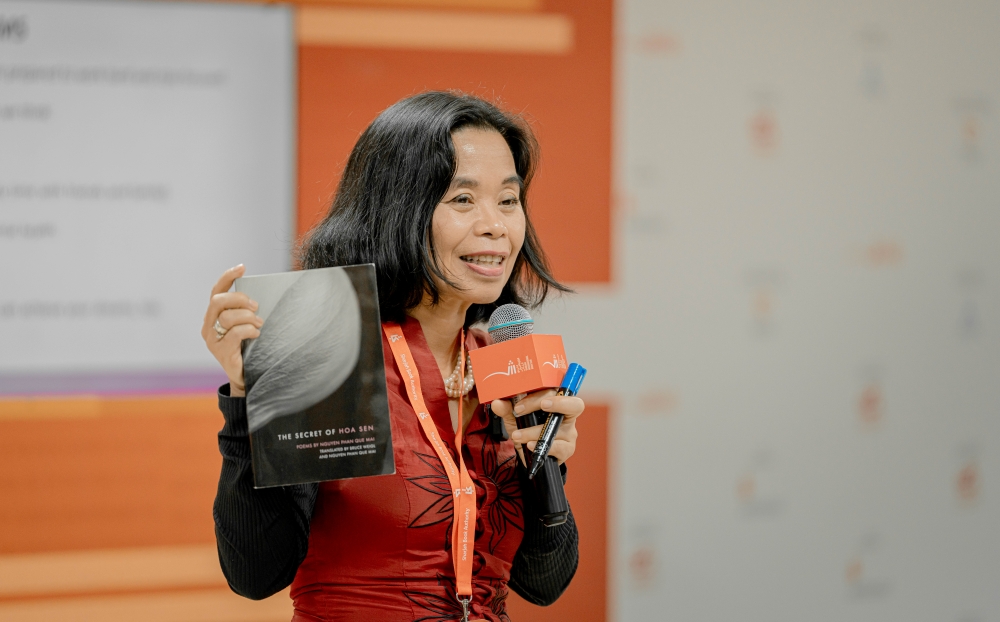 قدّمت الروائية والشاعرة الفيتنامية د. نغوين فان كوي ماي ورشة بعنوان «الكتابة الإبداعية» ضمن فعاليات الدورة الـ44 من معرض الشارقة الدولي للكتاب، المنعقدة تحت شعار «بينك وبين الكتاب»، تناولت خلالها فنون الكتابة كرحلةٍ إنسانيةٍ لاكتشاف الذات، واستلهام التراث الشخصي في بناء النص الأدبي.