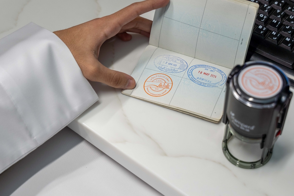 الشارقة تستقبل القادمين إلى الإمارات بختم يحمل شعار معرضها الدولي للكتاب