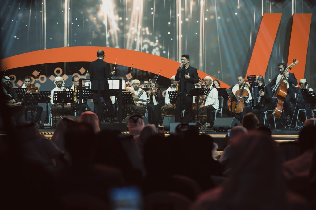 أما الأغنيات ذات الجذور التهامية والجنوبية مثل “ألا يا طير” و”رشّوا العطور” فقد حملت طابعاً احتفالياً نابضاً، وامتدت الرحلة إلى الأغنية الصنعانية ذات الإرث التاريخي الطويل من خلال أعمال مثل “متيم في الهوى” و”قال بن صالح” الذي أداها الفنان اليمني الشاب سالم فدعق، وهي ألوان تتسم بالزخارف اللحنية الدقيقة، وقد أعاد القحوم تقديمها بتركيب أوركسترالي أبرز جمالياتها المقامية. كذلك حضرت الأغاني الشمالية بطابعها الشجي مثل “ربوع الشمال” و”مضى عمري” بأداء عمر هادي، التي كشفت عن عمق الحس العاطفي في غناء تلك المنطقة.