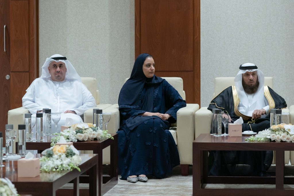 وتفضل سمو الشيخ سلطان بن أحمد القاسمي بتكريم أعضاء لجنة تحكيم جوائز المعرض لدورة هذا العام، وهم: سنان صويص، والدكتورة ليلى فامليار، والدكتورة لينا مرهج، والدكتورة هنادي سليط، والدكتورة نسيبة العزيبي.