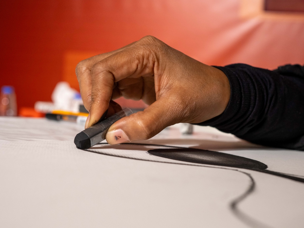 أما فاطمة سبيل، فاختارت الرصاص والفحم لتعبّر بخطوطٍ دقيقةٍ ونَفَسٍ تأملي عميق عن أثر القراءة في بناء الفكر وصقل الخيال، لتبدو لوحتها كصفحةٍ من كتابٍ مفتوحٍ على احتمالات الإبداع والدهشة.