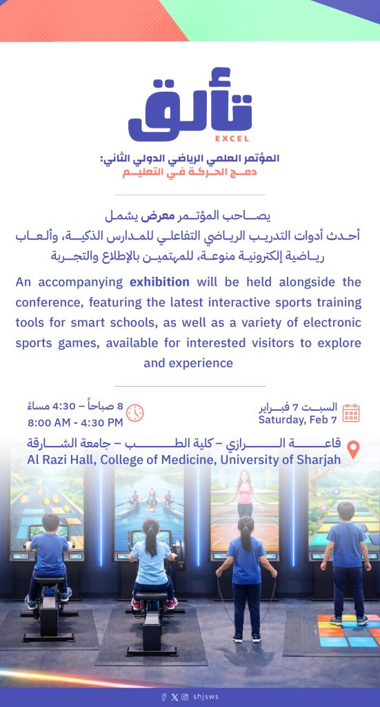 ينطلق غداً السبت المعرض التطبيقي المصاحب للمؤتمر العلمي الرياضي الدولي الثاني “تألّق“، الذي تنظمه مؤسسة الشارقة لرياضة المرأة في قاعة الرازي بجامعة الشارقة، ضمن الفعاليات المصاحبة للنسخة الثامنة من دورة الألعاب للأندية العربية للسيدات، في خطوة تستهدف تحويل مخرجات البحث العلمي إلى تطبيقات عملية داخل البيئة التعليمية.